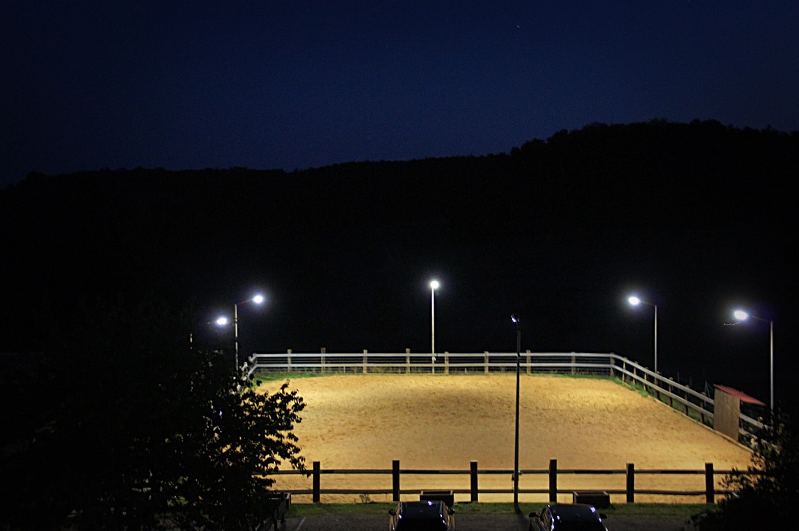 Wir verfügen über einen Reitplatz und ein kleines Roundpen, welche zur Bewegung und zum Auslauf der Pferde dienen.