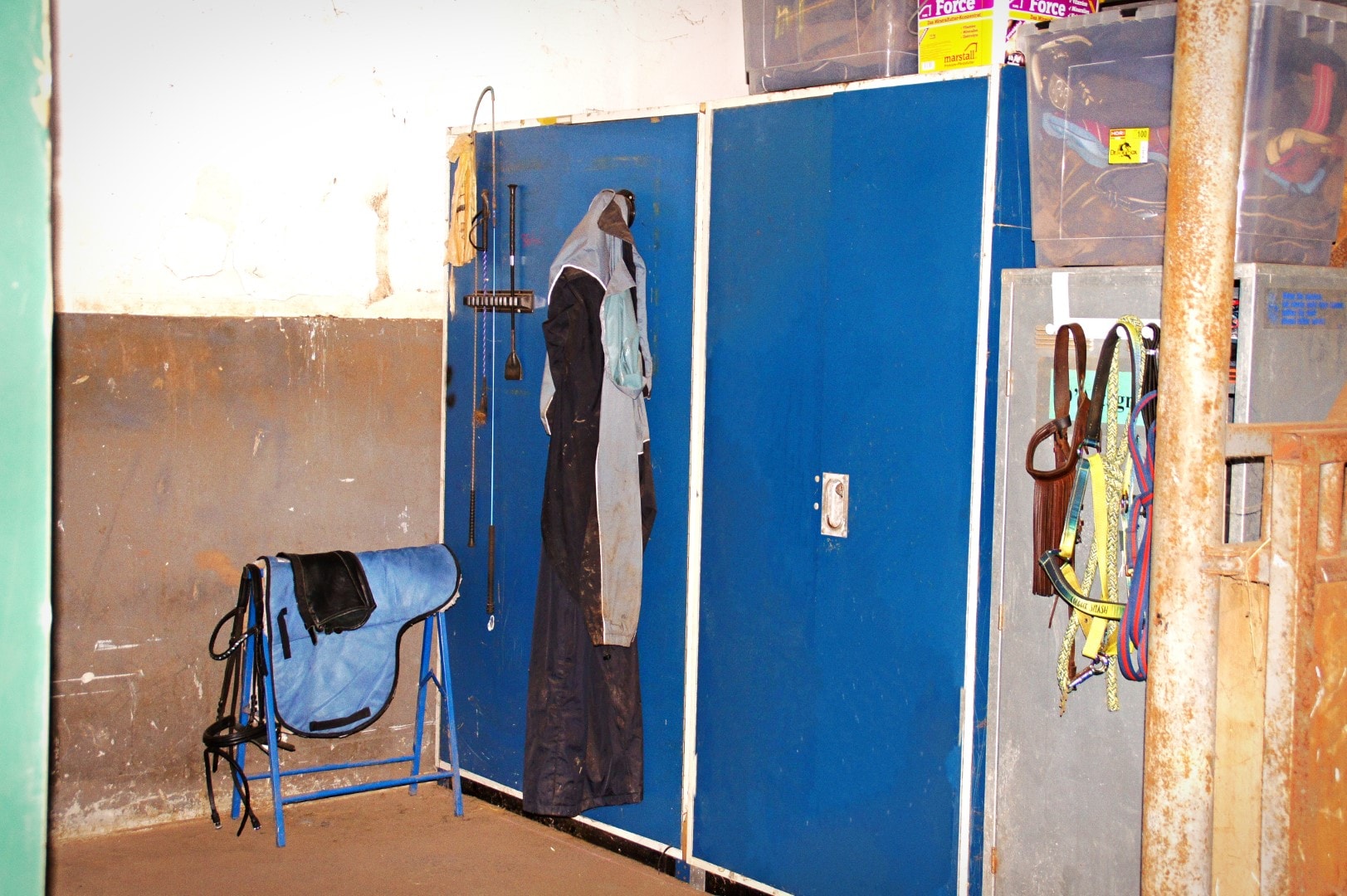 Unsere Sattel- & Futterkammer bietet Verstauungsmöglichkeiten für Zubehör wie z.B. Futtertonnen, Eimer und sonstiges Equipment.