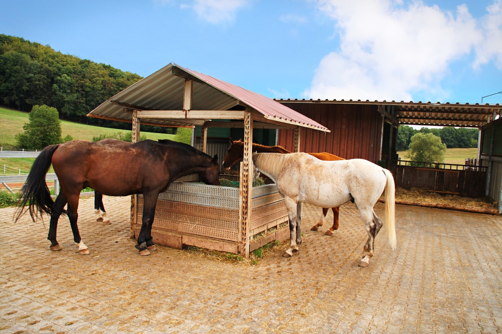 Sie bestehen aus einem befestigten Paddock, wozu immer eine überdachte Stallfläche mit Stroheinstreu gehört. Zentral befindet sich eine Heuraufe, welche jederzeit zugänglich für die Pferde ist und regelmäßig aufgefüllt wird.