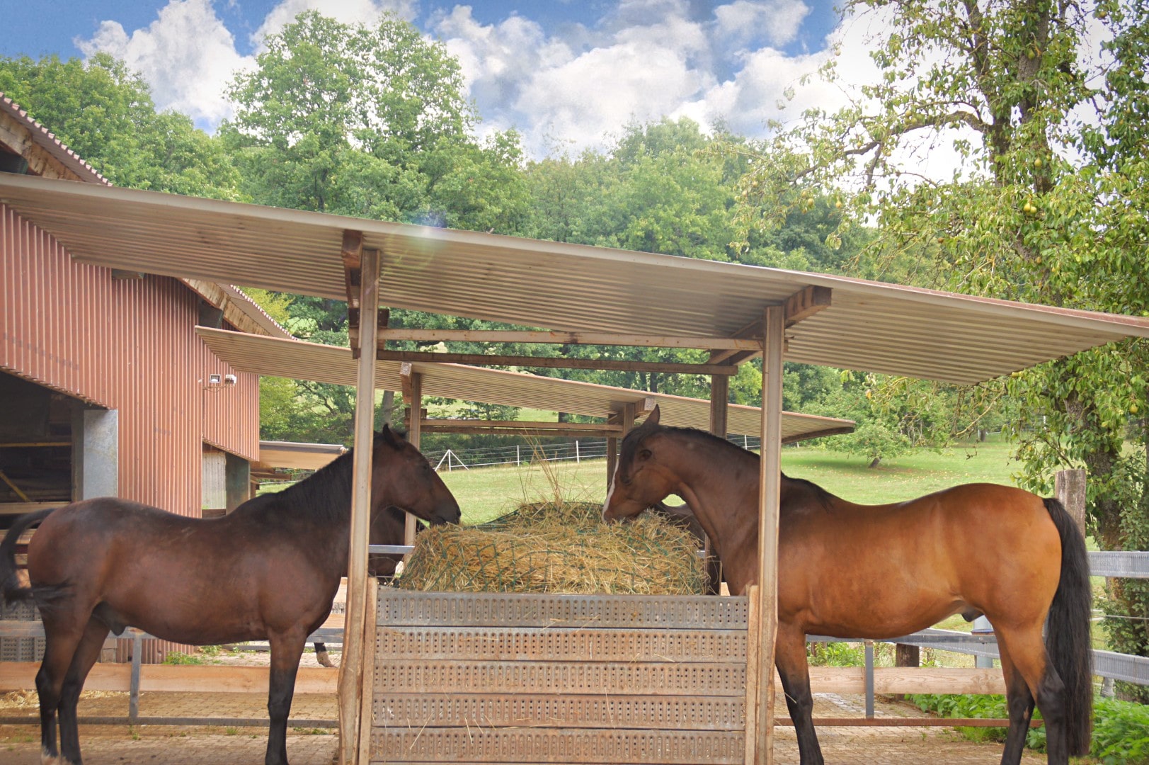 Sie bestehen aus einem befestigten Paddock, wozu immer eine überdachte Stallfläche mit Stroheinstreu gehört. Zentral befindet sich eine Heuraufe, welche jederzeit zugänglich für die Pferde ist und regelmäßig aufgefüllt wird.